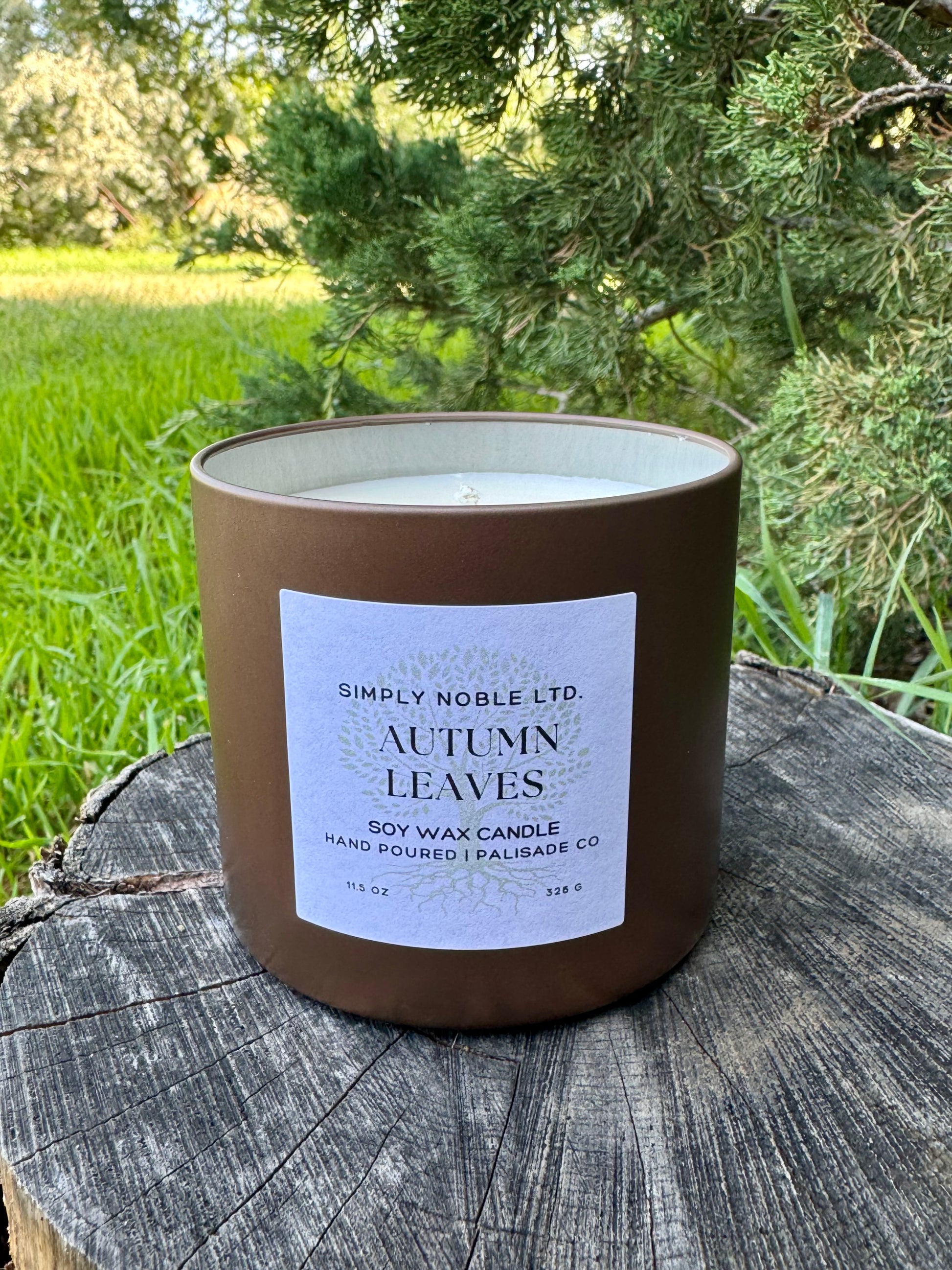 Contains 11.5 soy wax in a stylish bronze tin. Includes lid. Burn time: approx. 43 hrs. Always burn within sight, away from children, pets and flammables.
