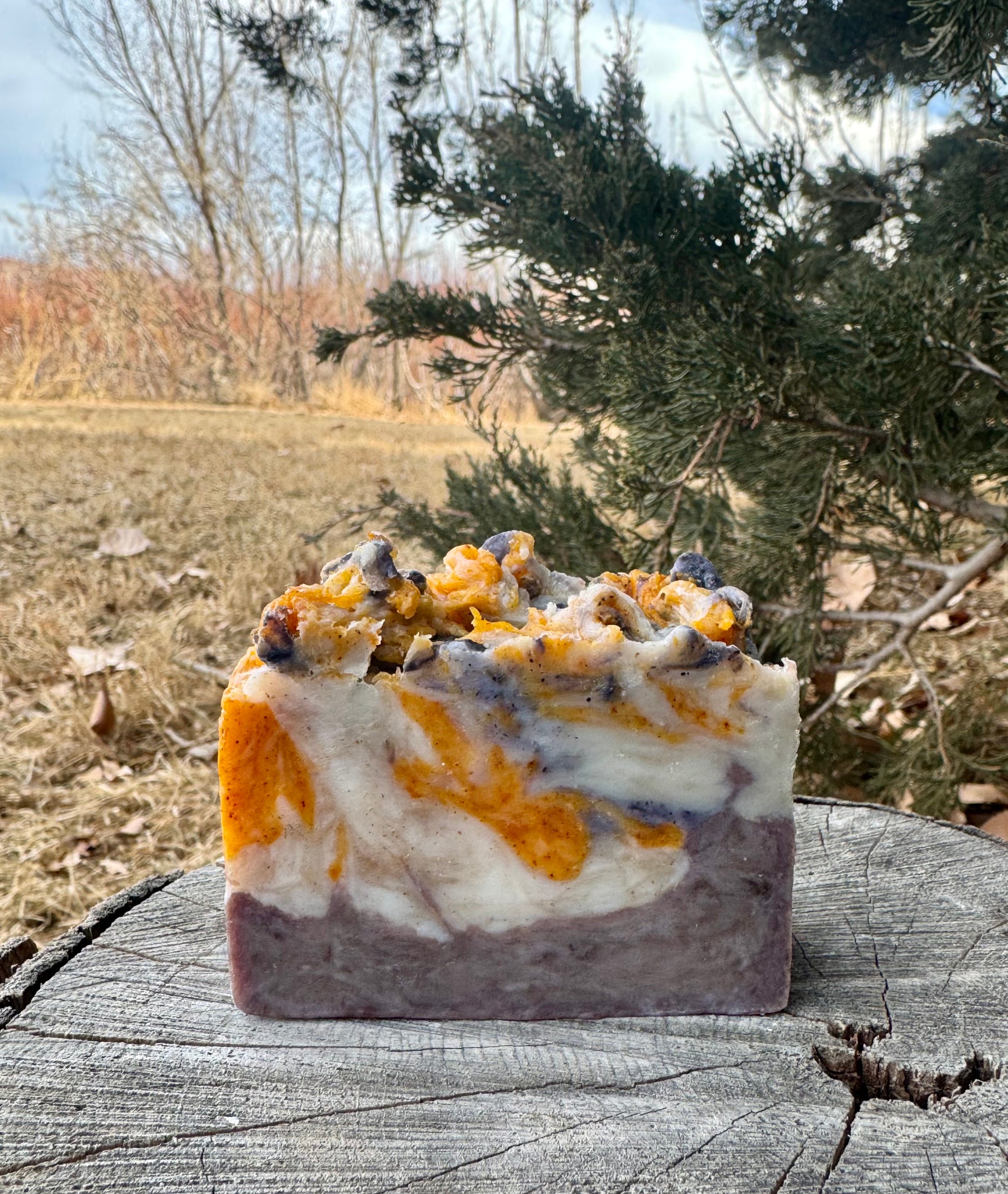 Let's face it, life is better in boots! Inspired by a comfy pair of cowboy boots, this fun bar is scented with warm leather, spice, and a touch of vanilla. Naturally colored with cocoa powder, Rhassoul clay, alkanet root and annatto seed.