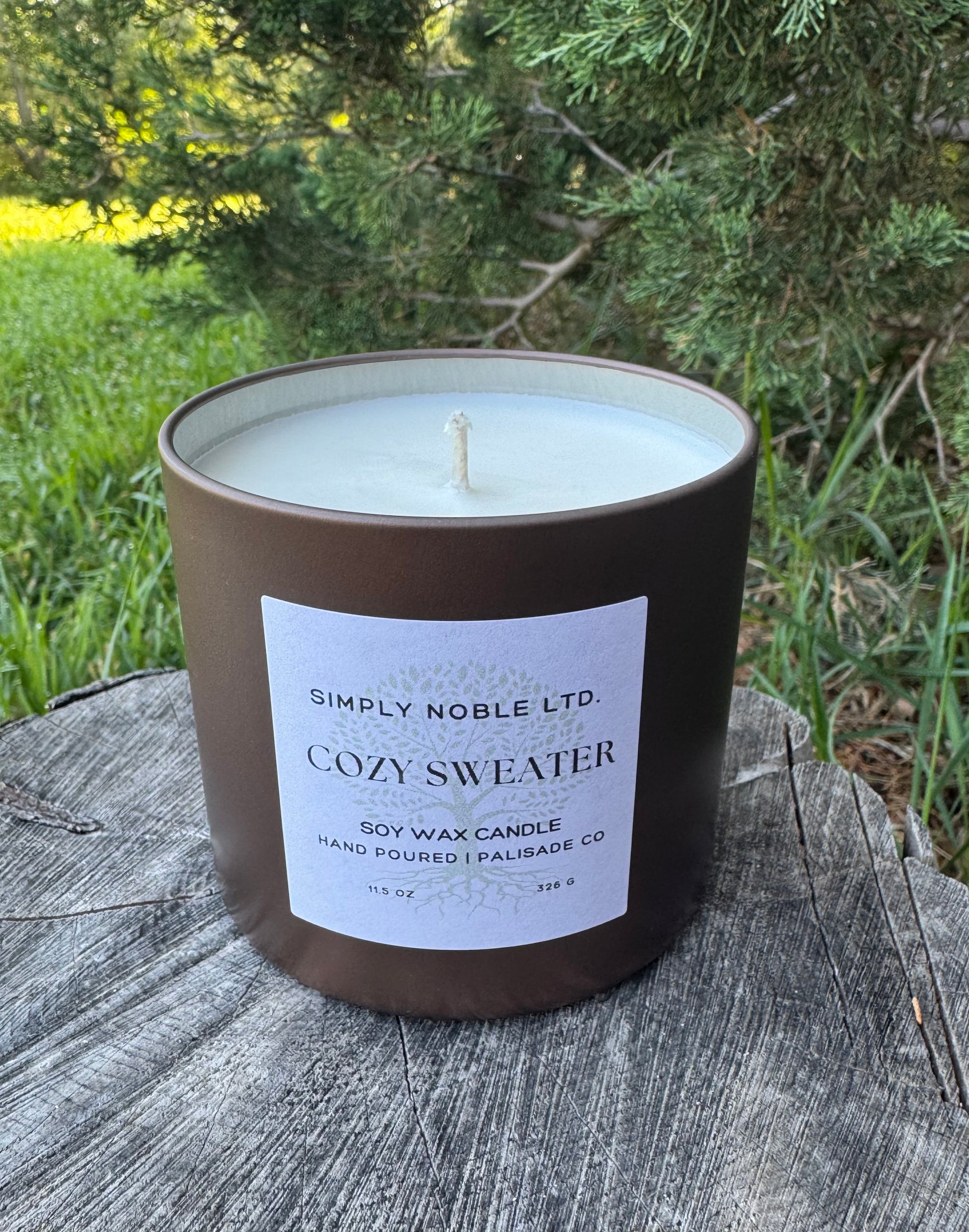 Contains 11.5 oz. soy wax in a timeless bronze tin. Includes lid. Burn time: approx. 43 hrs. Always burn candles within sight, away from children, pets and flammables.