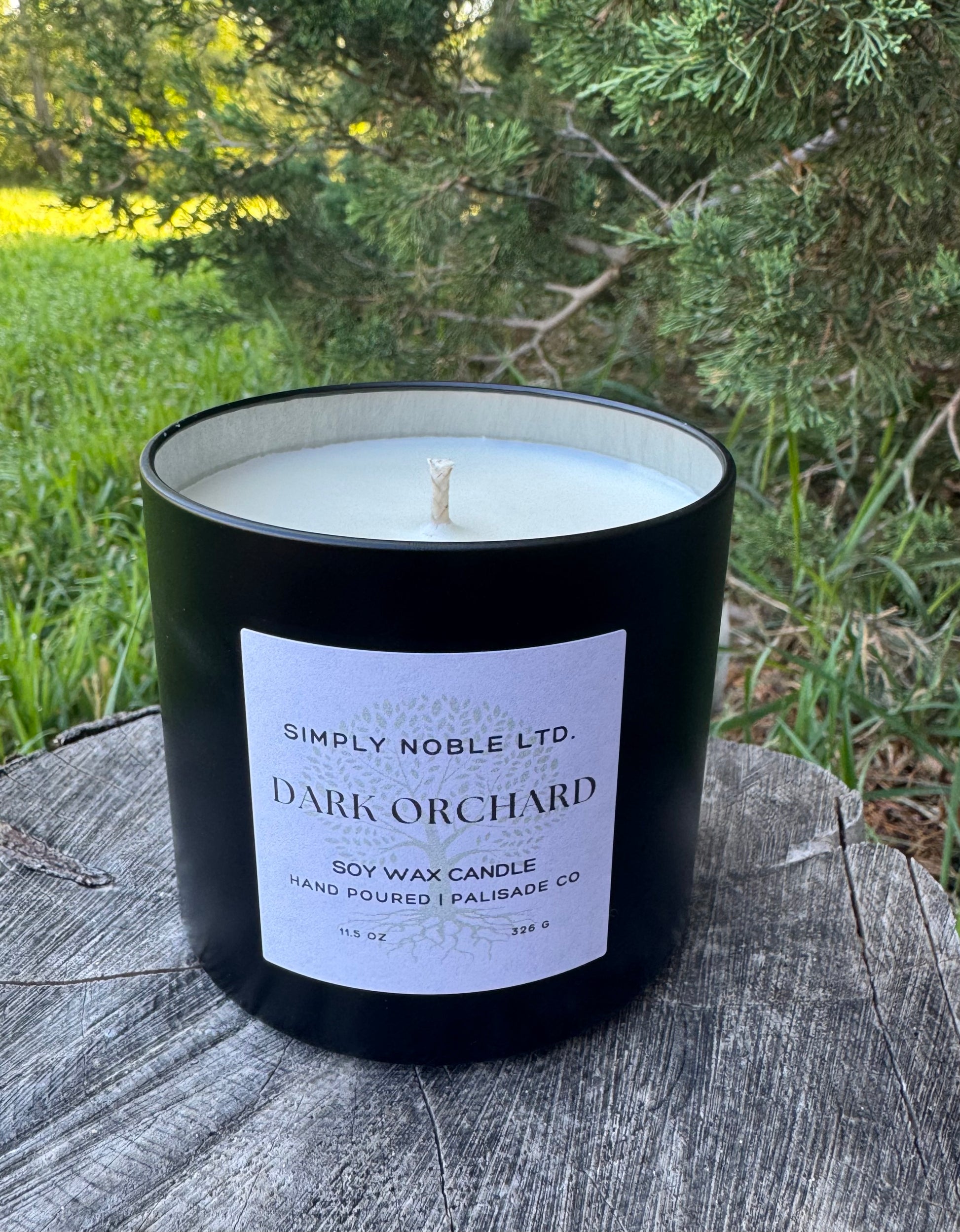 Hand poured in a sleek black tin. Includes lid. Contains 11.5 oz. soy wax. Always burn within sight, away from children, pets and flammables.