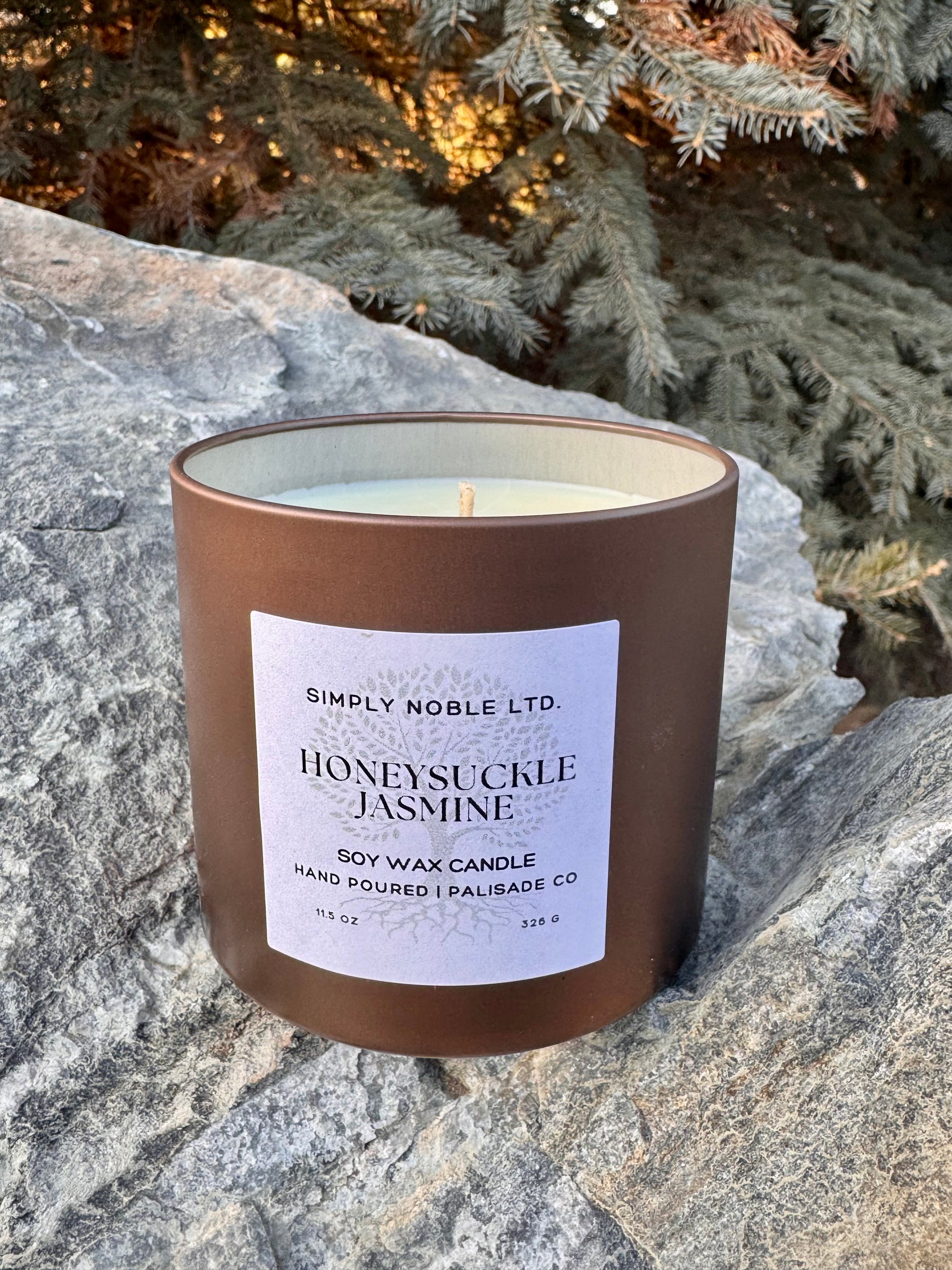 Contains 11.50 oz. soy wax, hand poured in a stylish bronze tin. Includes lid.