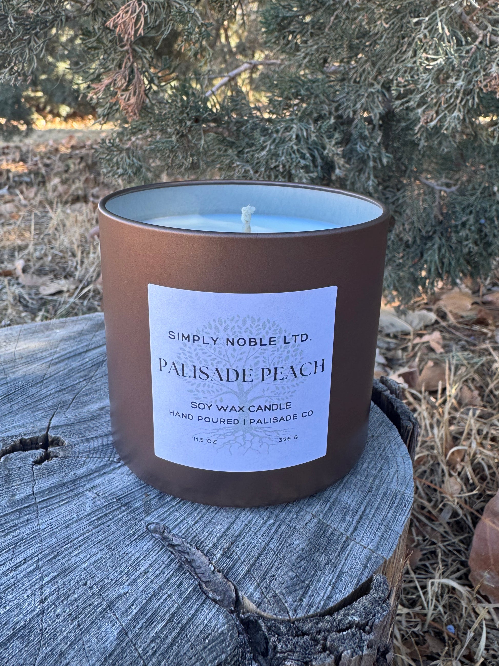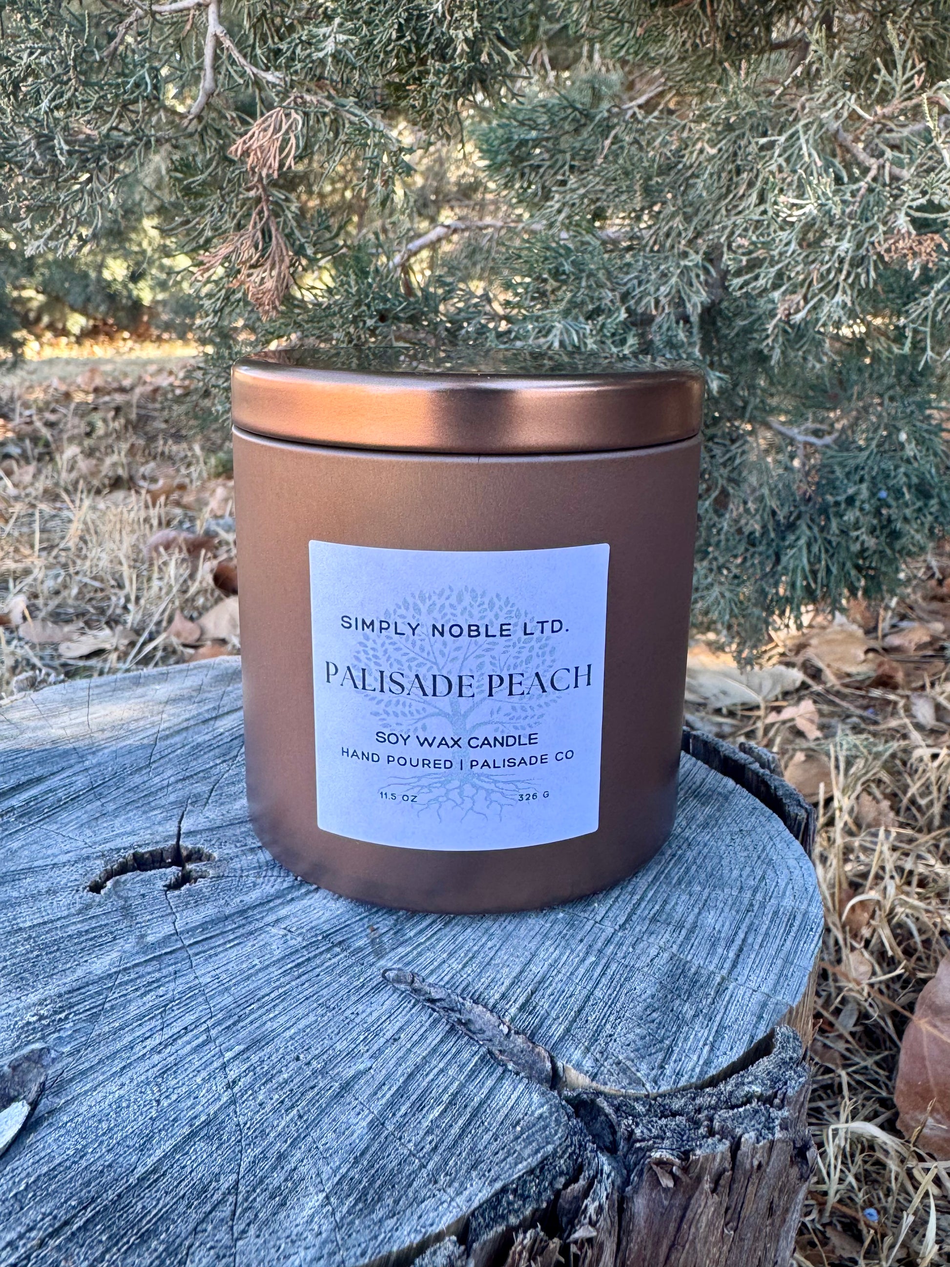 Fill your space with ripe, juicy peaches! Hand poured in a stylish 13 oz. bronze tin. Burn time: approx. 43 hrs.