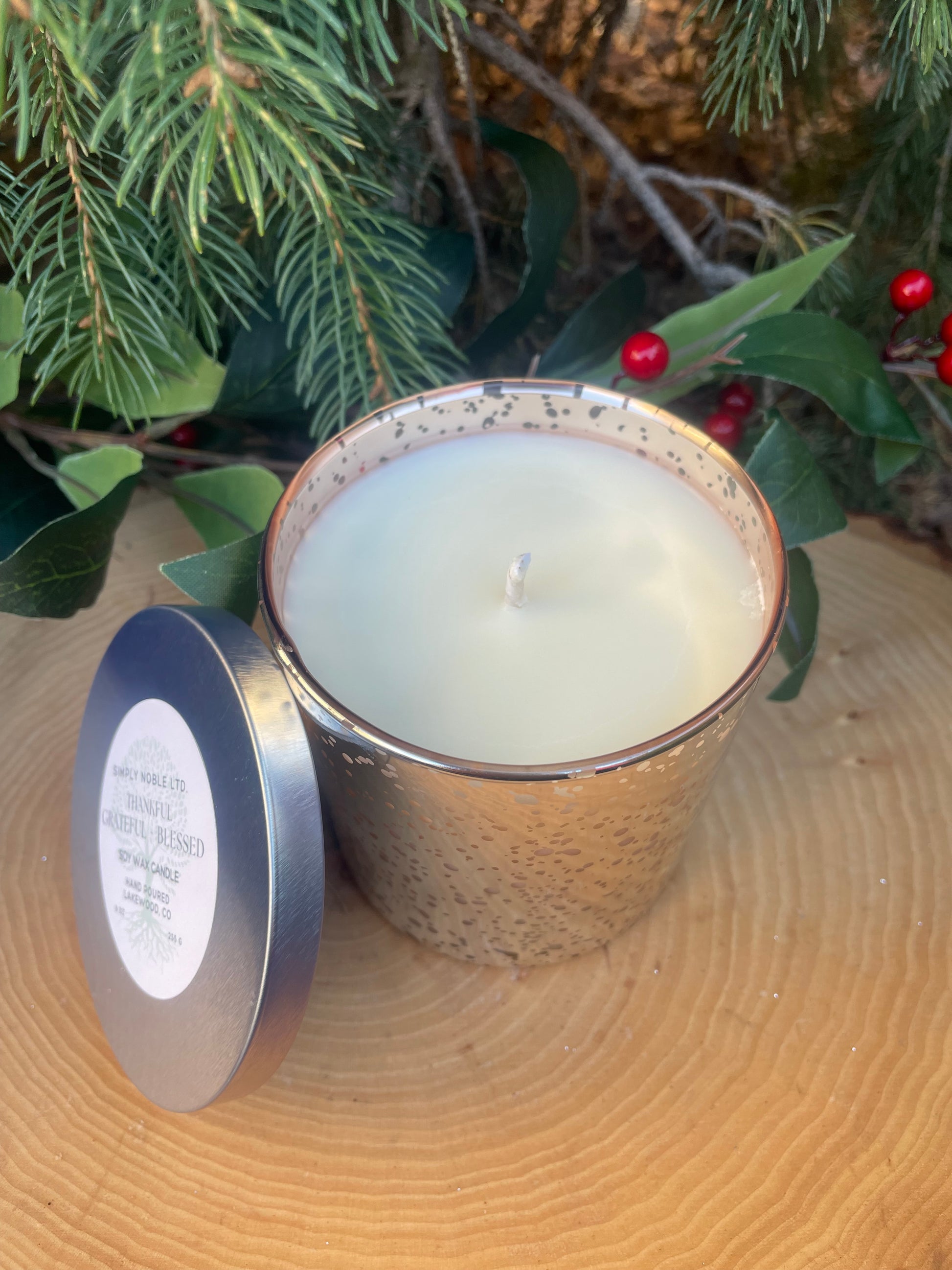 Celebrate the season with the uplifting blend of sun-kissed orange with warm clove and spice. A perfect companion for gatherings, it’s a heartfelt reminder to stay thankful, grateful, and blessed.
